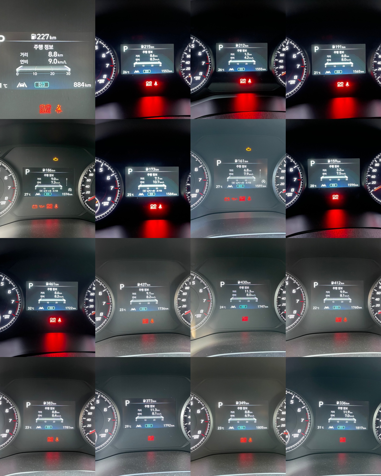 이 사진 16장은 모두 시내주행 기록입니다. 신호를 많이 받을 때도 있고, 적을 때도 있었습니다. 에어컨도 거의 다 1단으로 켰습니다.