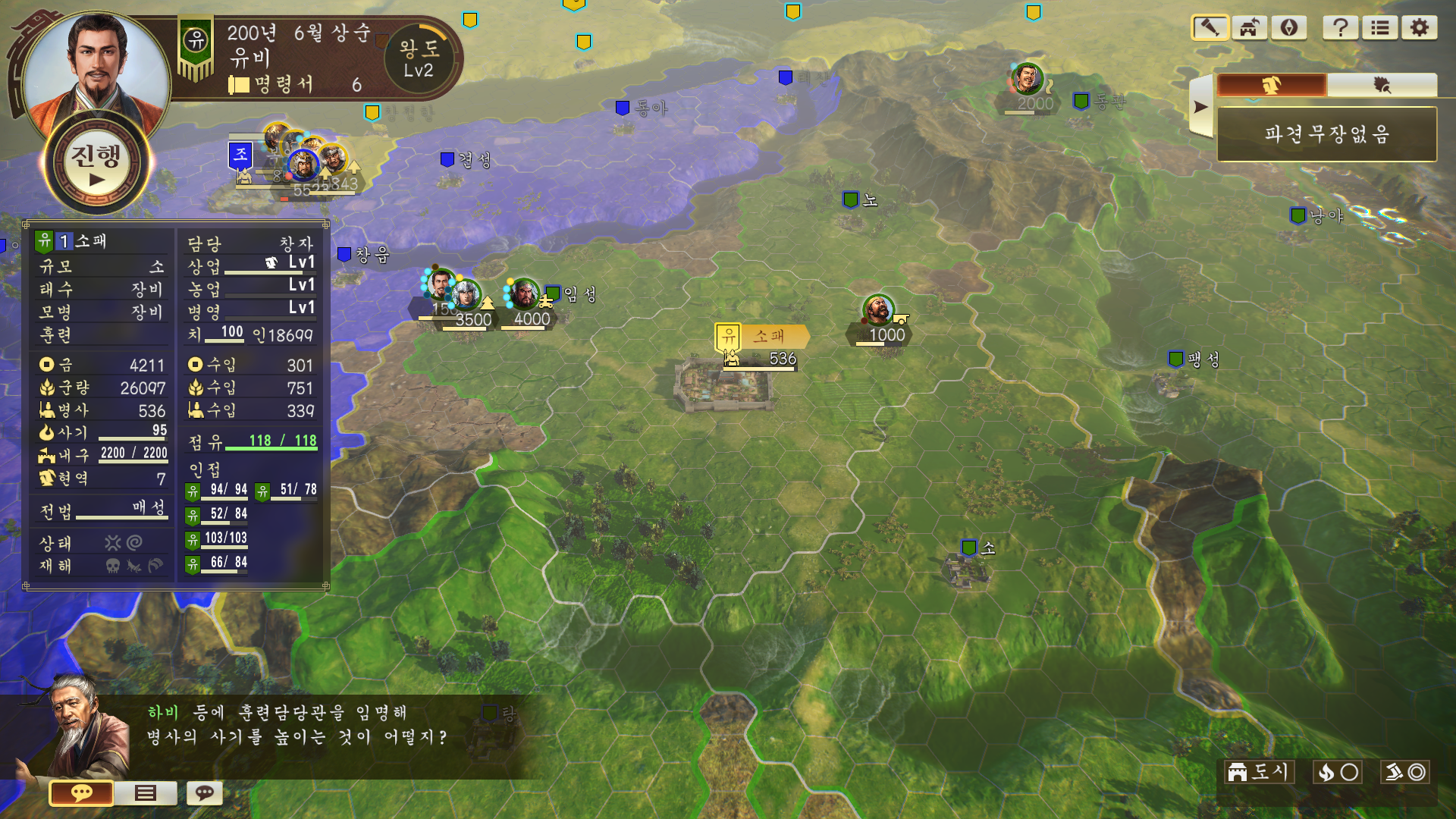 더불어 잡 장수들도 많이 필요하니 계속 등용을 해야 합니다.