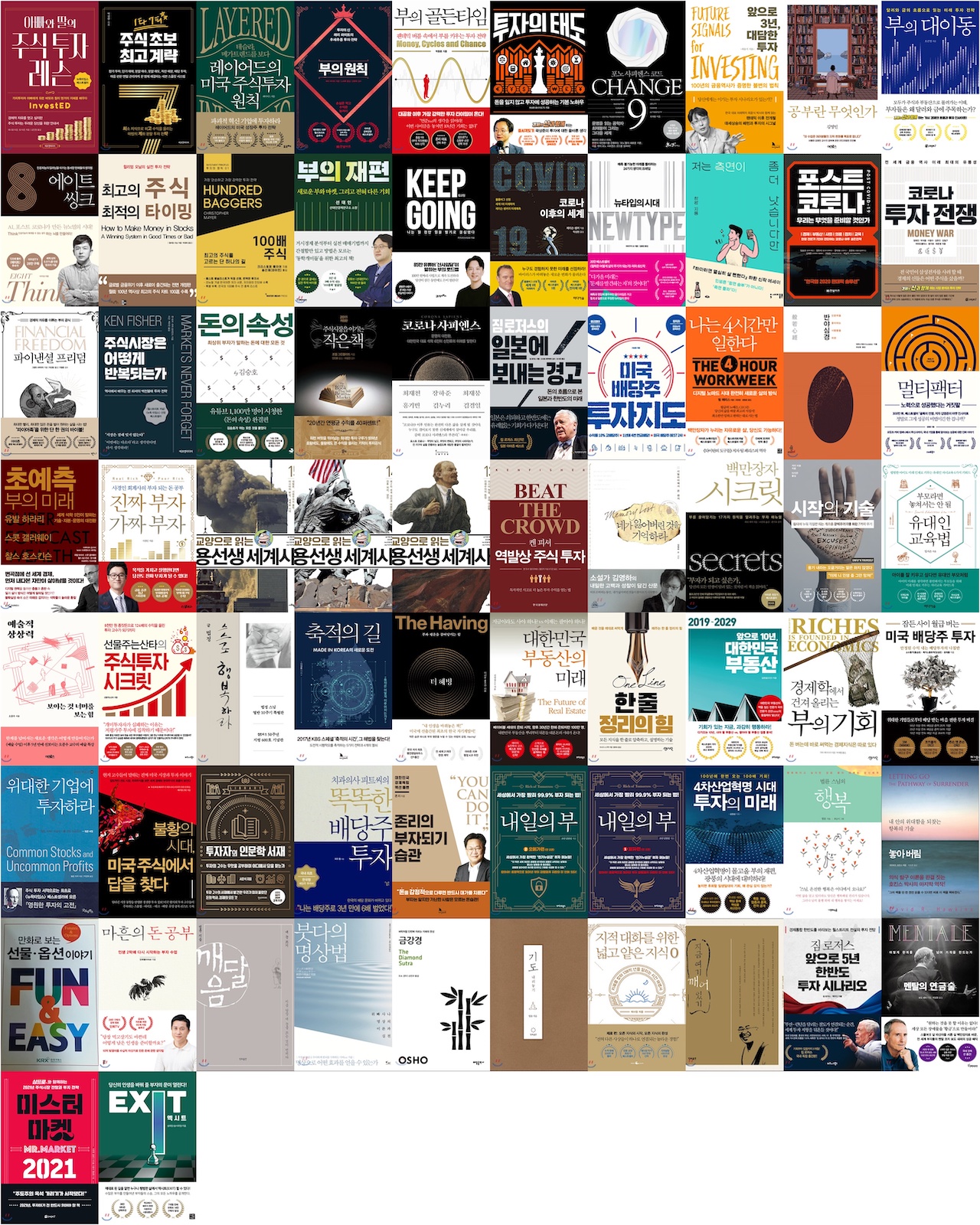 2018년 이후로 투자와 재테크에 관심을 갖기 시작했습니다. 급기야 2020년에는 몇몇 책을 제외하고는 거의 다 투자 관련 경제, 경영 서적이네요. 가끔 인문학 책과 철학 관련 책을 읽기도 했습니다. 투자와 철학 또는 명상은 묘하게 맞닿아 있기도 한 것 같습니다. 이 책들은 대부분 근처 도서관에서 빌려 읽었고, 이 중에서 23권 정도는 돈 주고 샀네요.ㅠㅠ