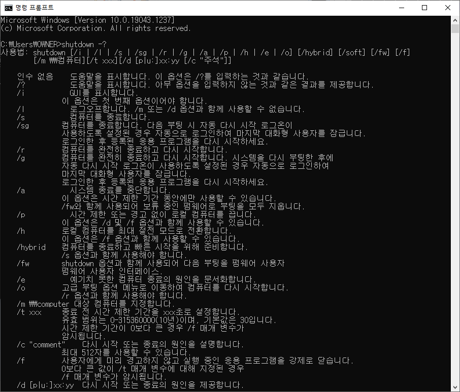 이렇게 입력하시면 됩니다. 주르륵 자세한 명령어 옵션이 나옵니다.