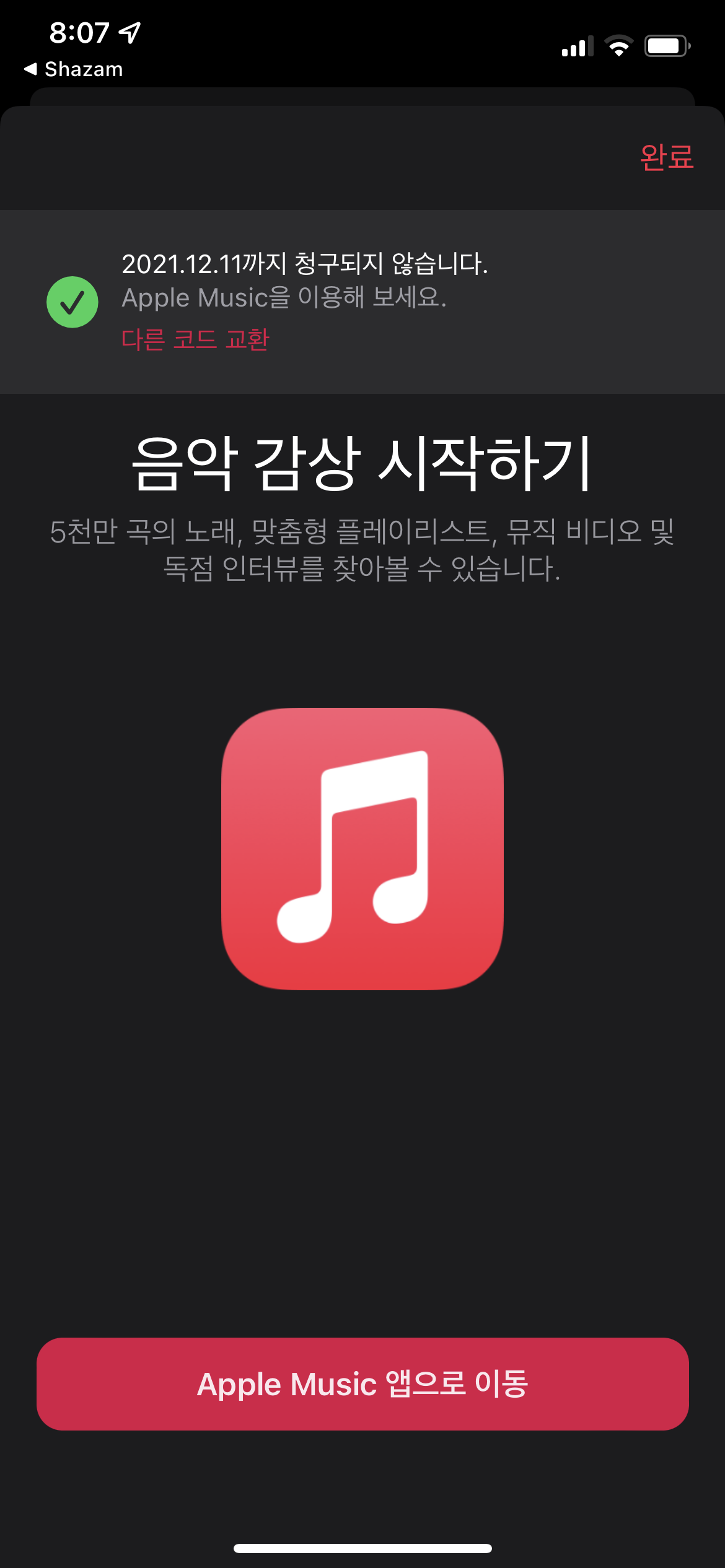애플뮤직 무료 2개월(SHAZAM을 통해) 이용하는 법