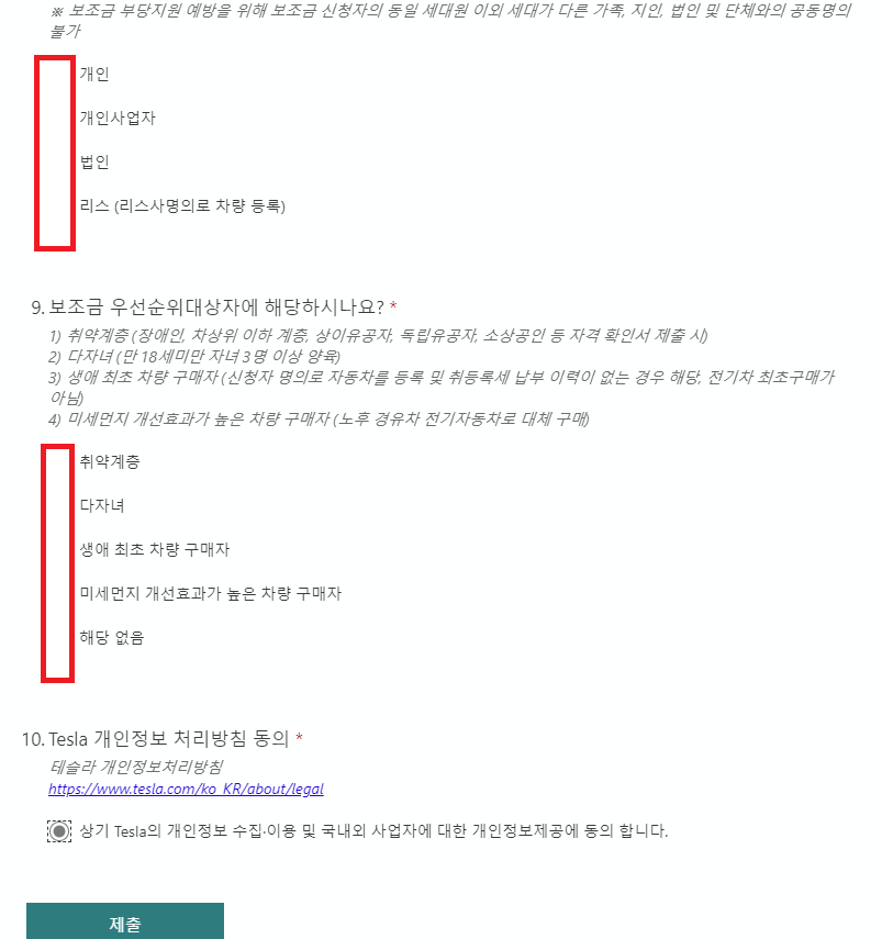 모델3와 모델Y의 보조금 설문조사였습니다. 카페 글을 보니, 5~7월 계약자 모두에게 설문조사가 간 것 같네요.