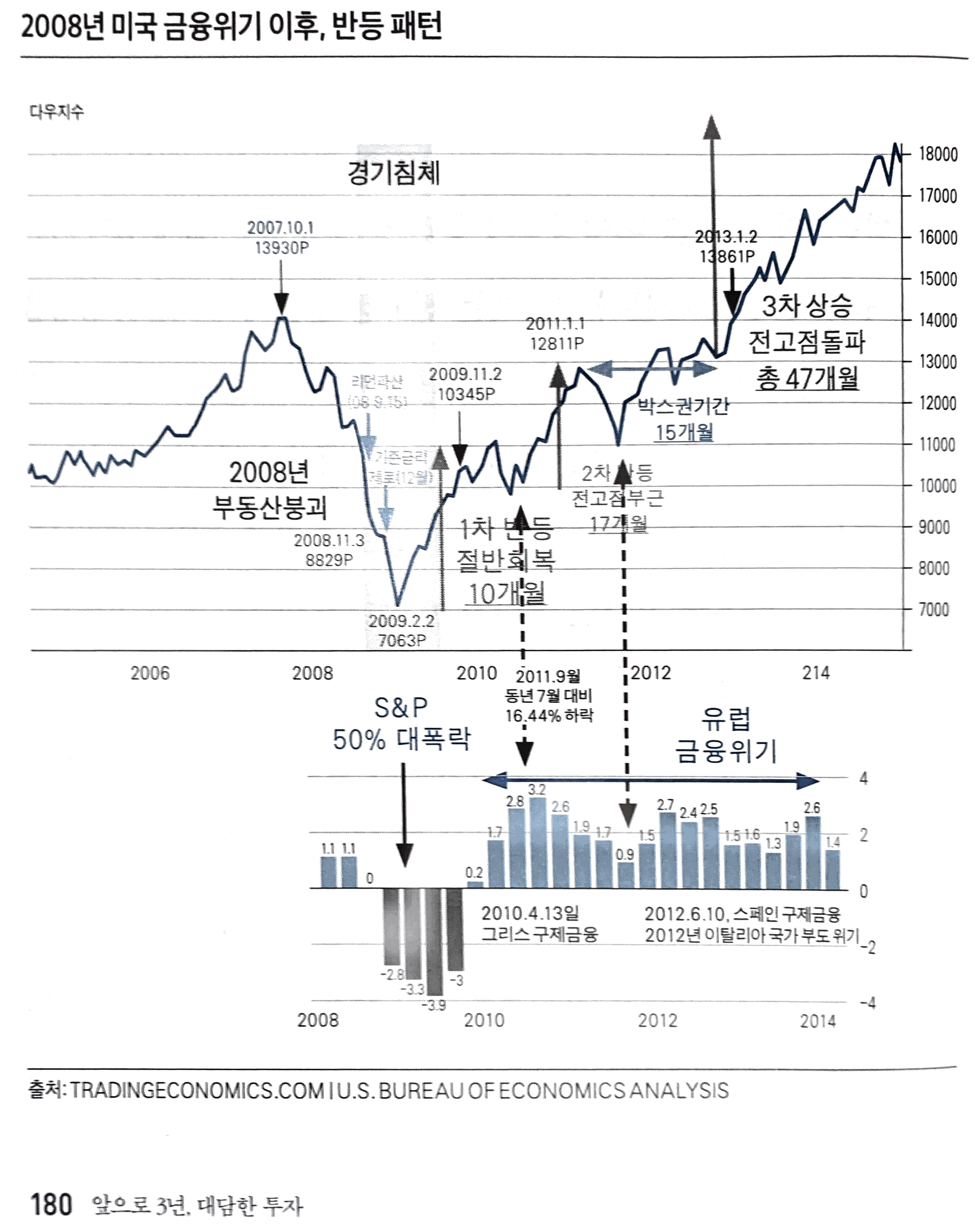 대폭락 이후 시작되는 대세상승은 4단계를 거쳐 진행된다. 1차 반등->2차 반등->박스권 휴식기->3차 상승의 4단계를 거치는 패턴은 자본주의가 몰락하지 않고, 미국이 망하지 않는다면 이번에도 변함없이 관철될 대세상승장의 불변의 법칙이다. 각 단계마다 어느 정도의 시간이 걸리고, 어디까지 상승할 것인지만 당시의 금융환경과 실물경기에 의해 달라질 뿐이다.