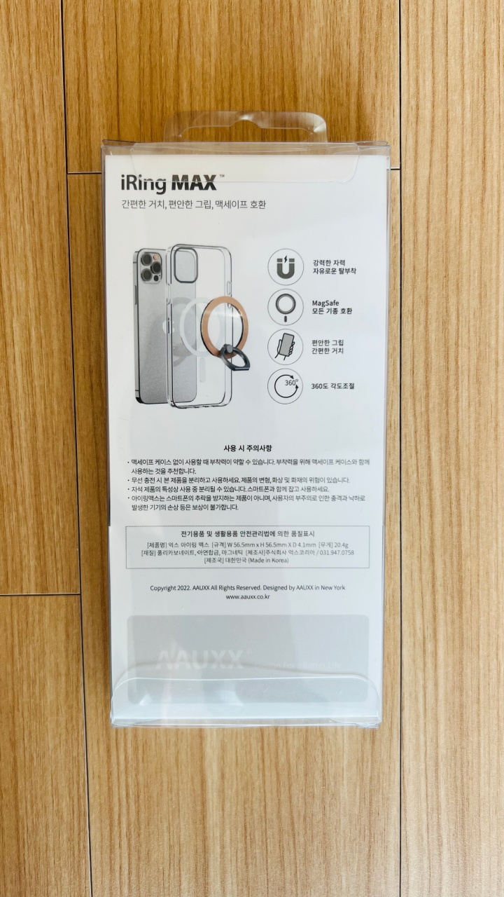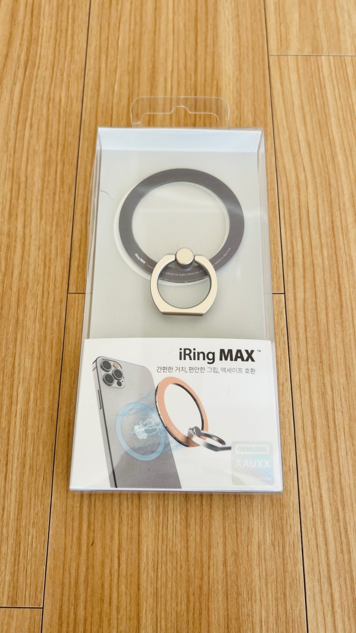 이 녀석이 아이링 맥스입니다. 처음엔 동그란 자석 가운데에 투명 플라스틱이 있고, 6개의 동그라미(?)도 있어서 이게 뭐지 싶었습니다. 왜 가운데에 플라스틱을 두었을까 했습니다. 제품의 미관을 해치는 느낌이었습니다. 이 제품과 비교되는 제품이 앤커 제품인데, 앤커 링에는 가운데가 텅 비어 있는 것 같던데 투명 플라스틱이 붙어 있으면 아무래도 크게 좋을 것 없어보였습니다.
