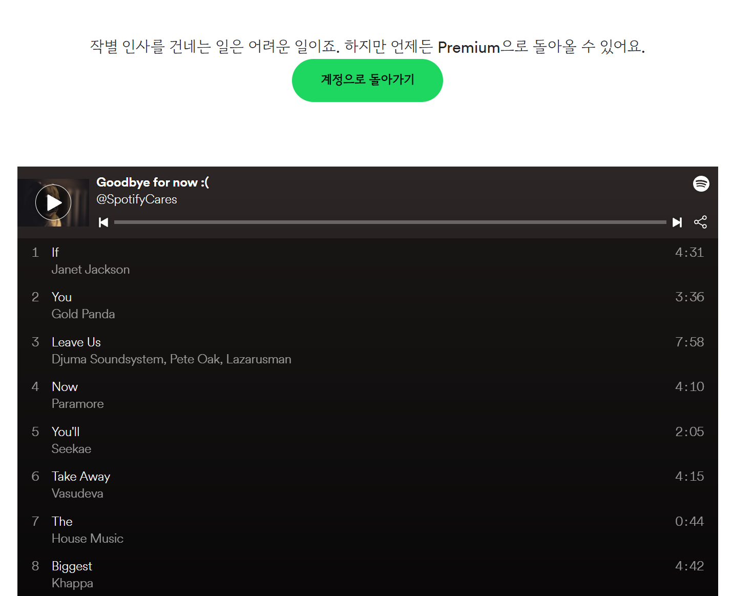 오늘은 스포티파이 구독 해지, 결제 해지 방법을 알아보았습니다. 저도 해지를 하려다가 몇 번을 찾아 찾아 헤매다 이렇게 포스팅까지 하게 되었네요. 그래도 무료로 좋은 서비스를 이용하고 있으니 감사히 받아들입니다. 도움이 되셨기를!