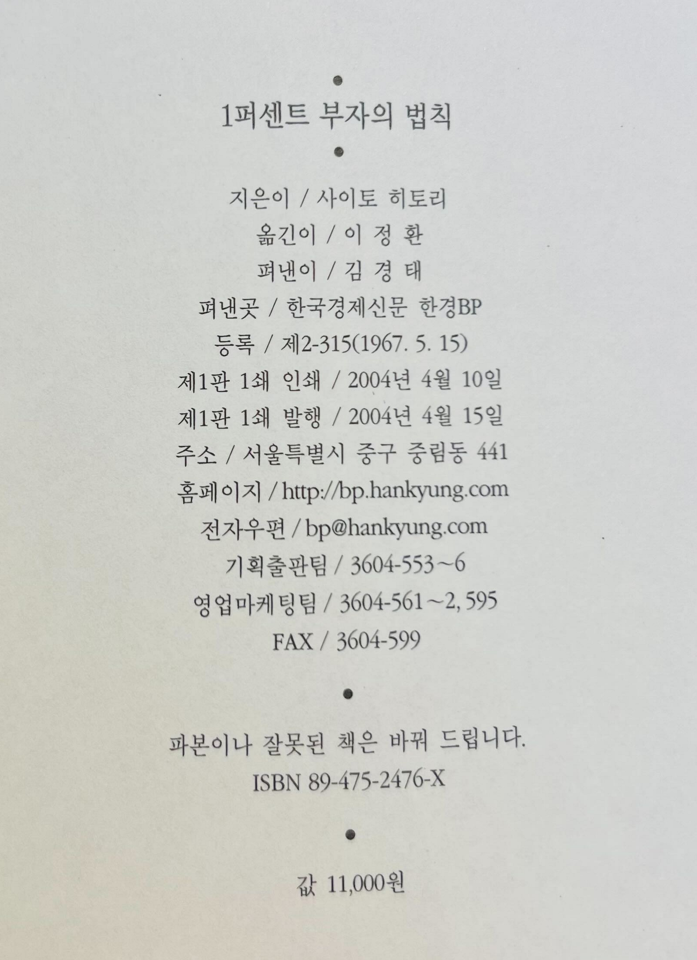 1퍼센트 부자의 법칙 책리뷰 - 첫 번째 1퍼센트 부자의 법칙 / 한국경제신문사(한경피비) / 2004년4월15일 이 책은 현재 절판된 책입니다. 제가 이 책을 알게 된 건 유튜브 '[책추남TV] 책 추천해 주는
