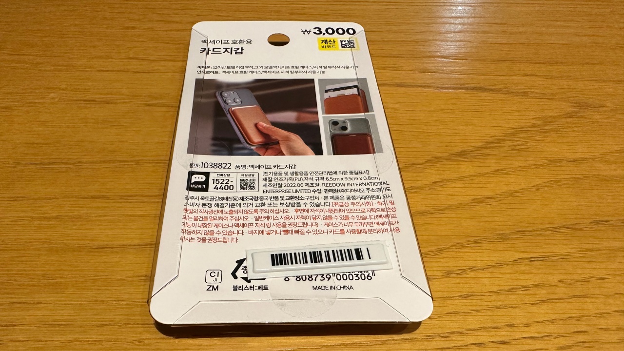 저는 다양한 다이소의 맥세이프 호환용 액세서리 중에 카드지갑 하나만 일단 사봤습니다. 애플 정품 맥세이프 가죽 카드지갑은 무려 가격이 85,000원입니다. 점점 가격이 상승하였죠. 그래서 구입을 망설이고 있었는데 품질은 안 좋겠지만 다이소 맥세이프 카드지갑이 3천원이라는 가격에 나왔기에 속는 셈 치고 구입을 했습니다.