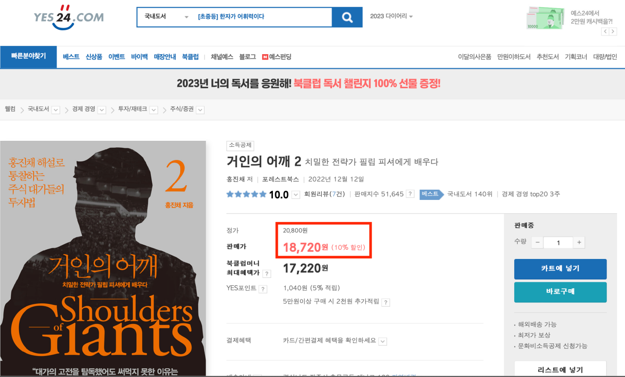 제가 최근 사려고 하는 책 중의 하나가 홍진채 님이 쓴 거인의 어깨2입니다. 거인의 어깨1은 직접 구입하여 너무 재밌게 읽었네요. 이 책을 구입한다 가정하고 알아보면,