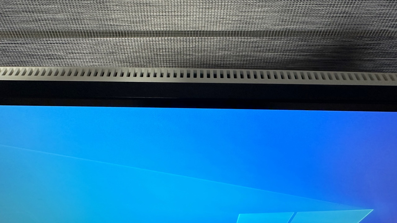 모니터 위쪽에는 이렇게 구멍이 뚫려 있습니다. 환기를 위한 목적 같으며, 디자인적으로도 나쁘지 않습니다.