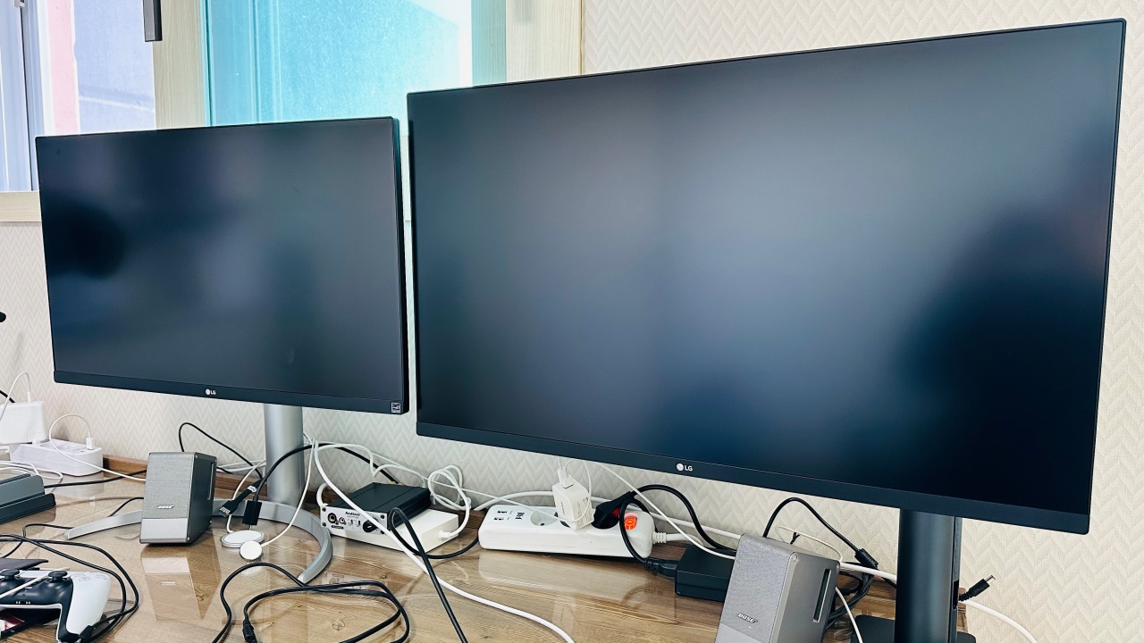 원래는 보조 모니터로 삼성 u32r590, 주 모니터로 LG 27UP850을 사용하였습니다. 그러다가 32인치의 좀 더 좋으면서 큰 모니터와, 모니터암에 대한 욕구로 인해 32UN880을 주문하게 되었습니다. u32r590은 당근마켓으로 판매하였습니다.