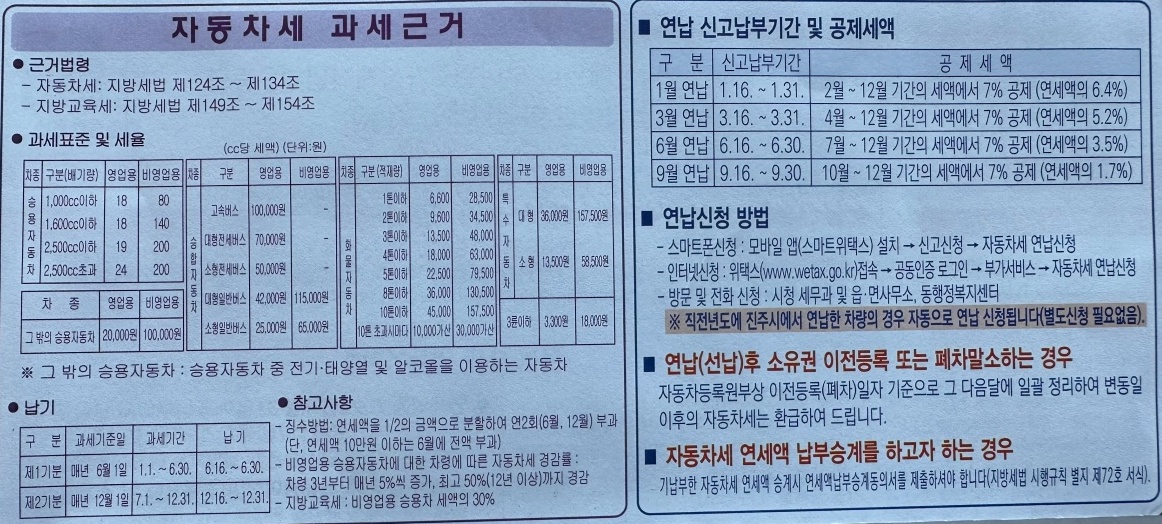 피할 수 없는 세금의 늪입니다. 자동차세를 연납하면 그래도 할인 혜택이 있으니 이득입니다.