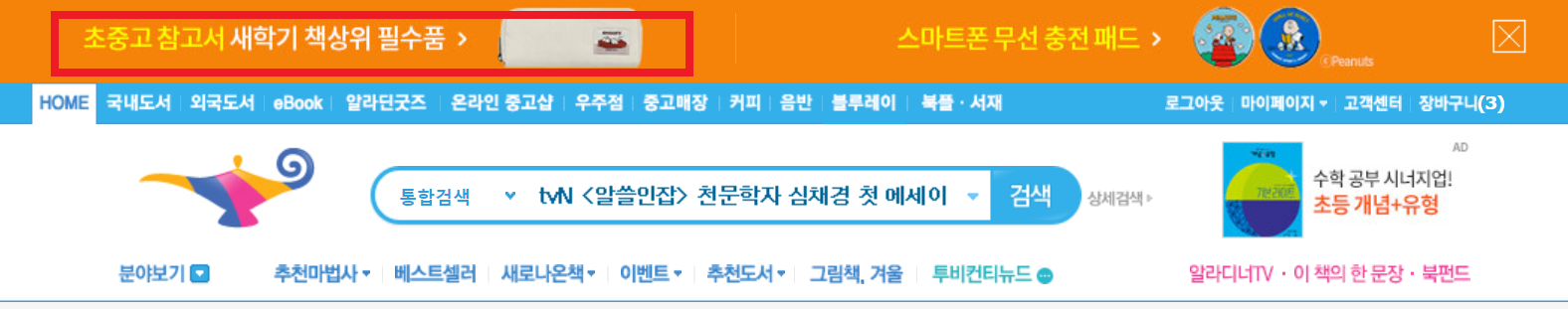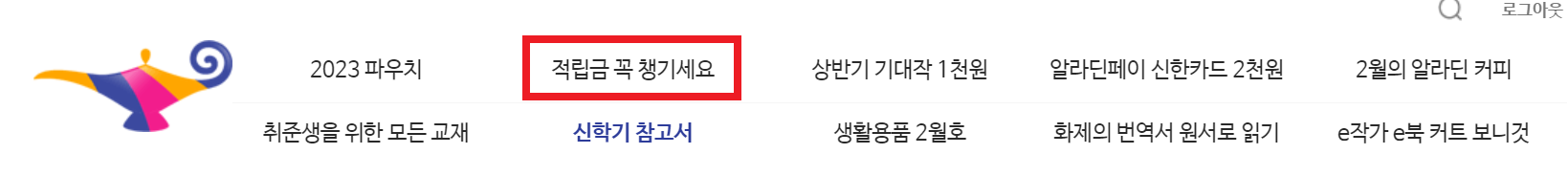 예스24와 비슷하게 뜨는데, '적립금 꼭 챙기세요'를 누릅니다.