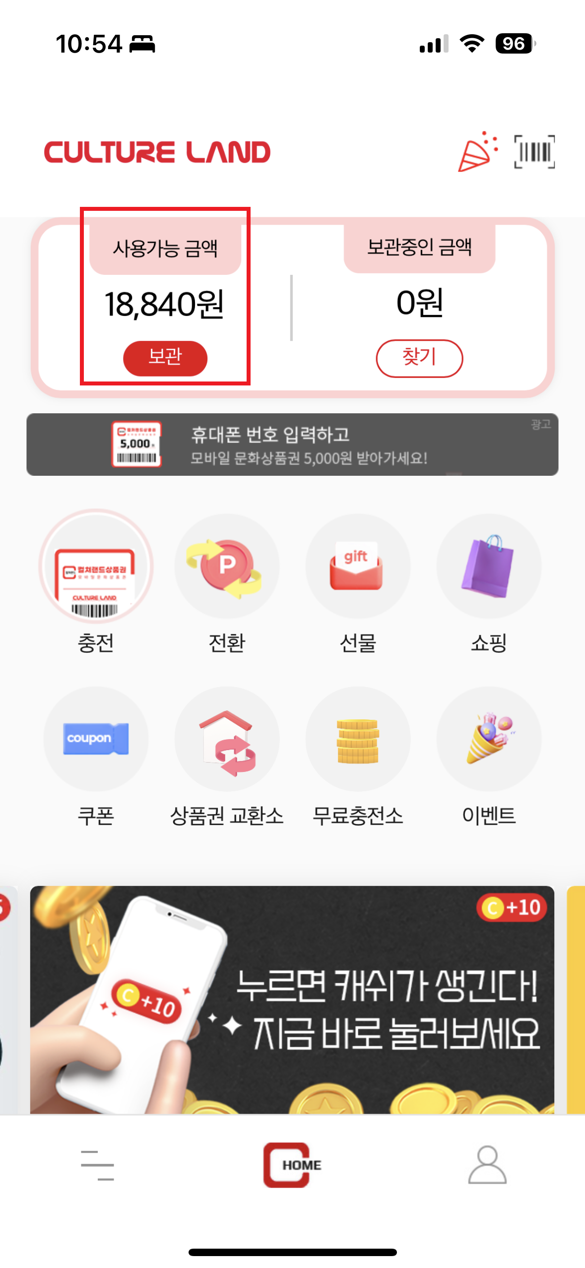 컬쳐랜드 컬쳐캐쉬(안심금고) 쉽게 찾는 방법