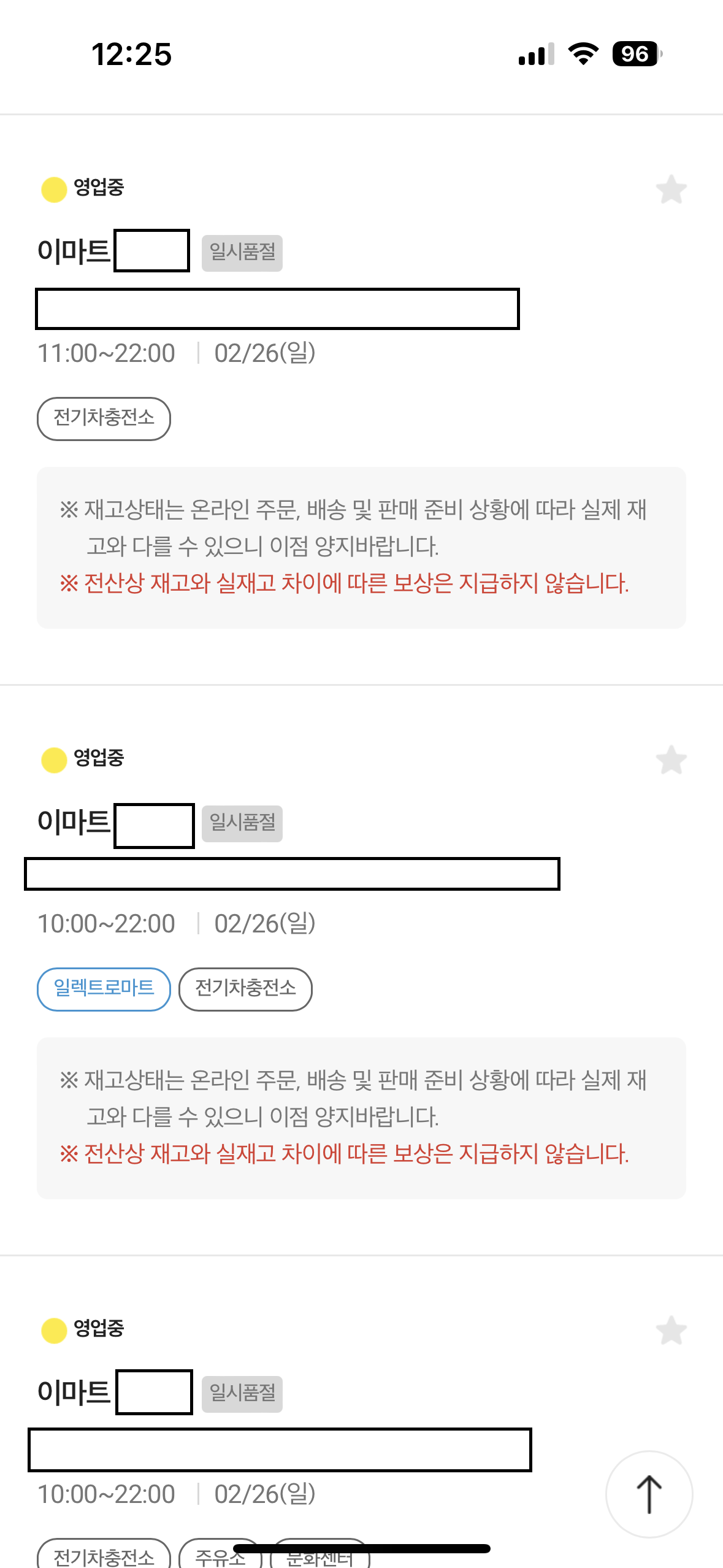 이렇게 단골점포에서 물건이 있는지 없는지 결과가 나옵니다. 현재 결과를 보면 '일시품절'이라고 나옵니다.