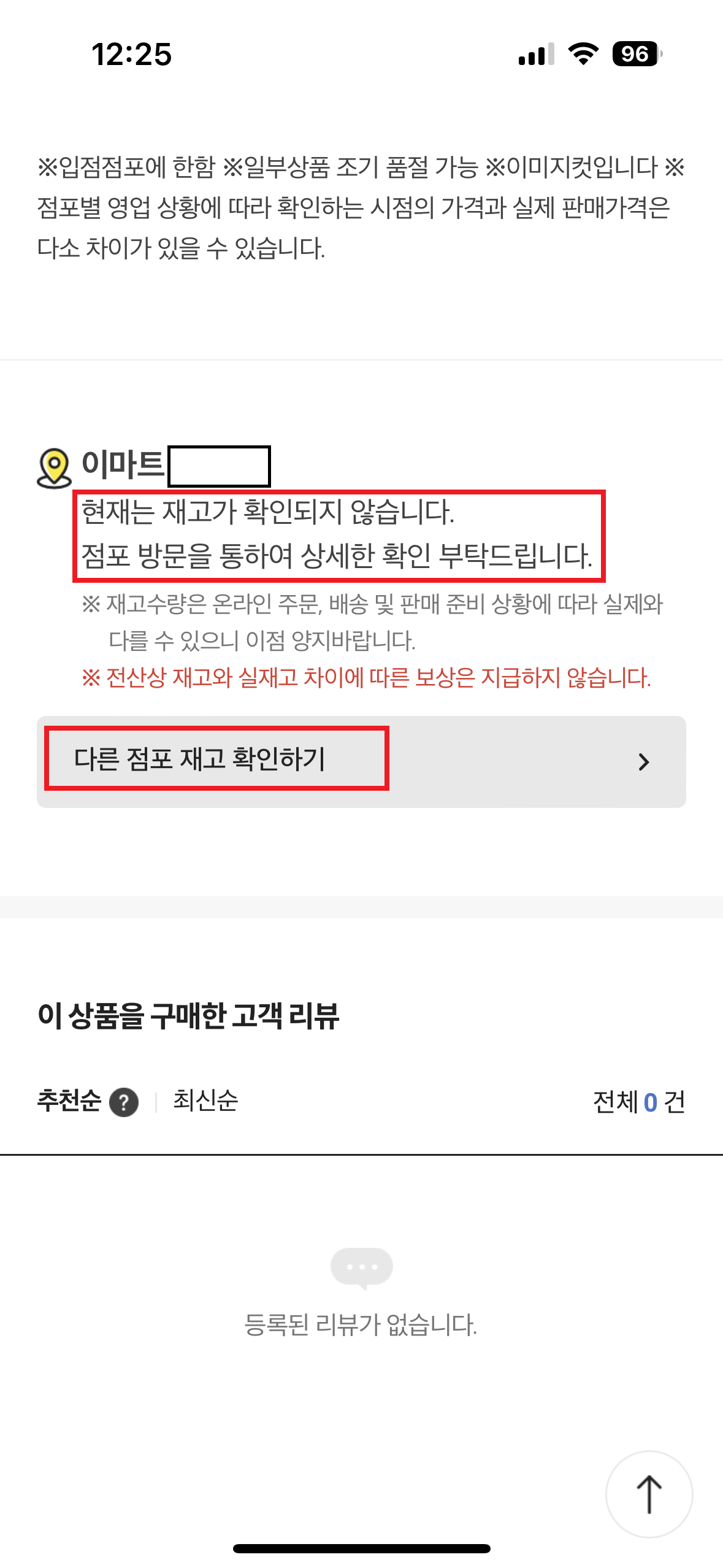 ‘상품 검색 서비스’ 재고 정보는 이마트앱 로그인 후 단골점포를 설정할 시 확인할 수 있으며