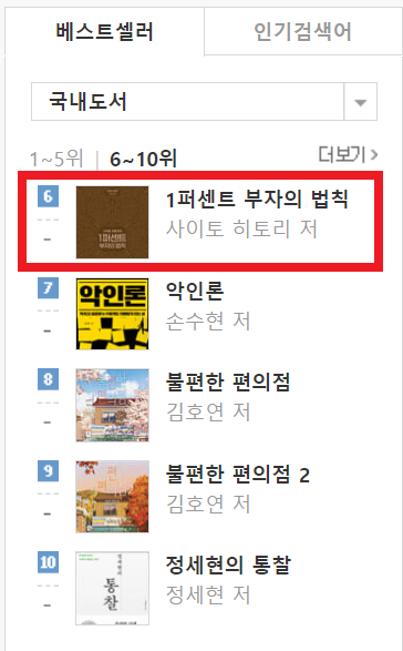 예스24 베스트셀러 순위에서는 6위입니다.