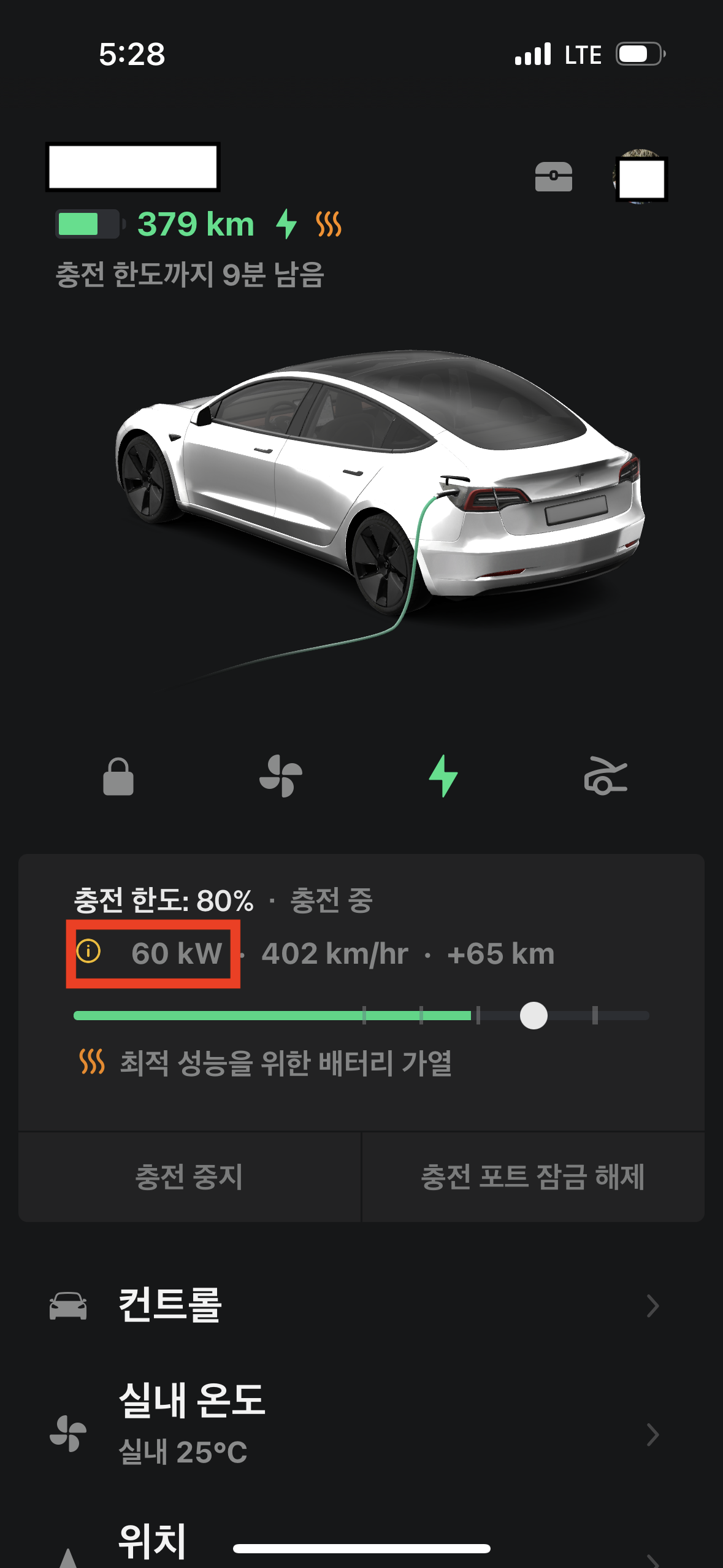 그런데 속도가 너무 안 나왔네요. 무려 60kw가 나왔습니다. v2 충전기로 자주 충전을 하는데 옆에 차가 없을 때는 100kw정도는 나오던데 말입니다.