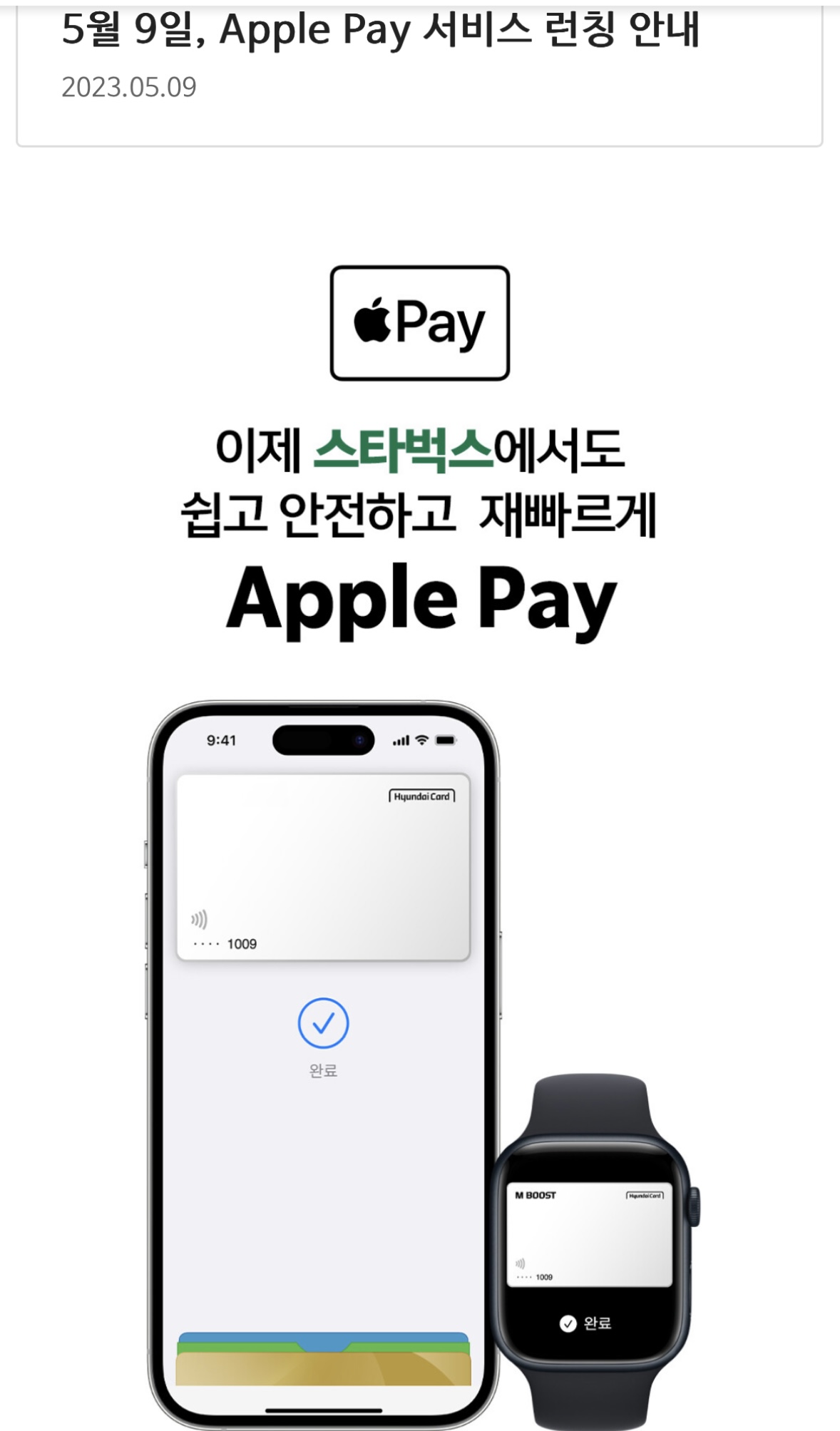 스타벅스 애플페이 현대카드! 5월 9일부터 96% 매장에서 사용 가능