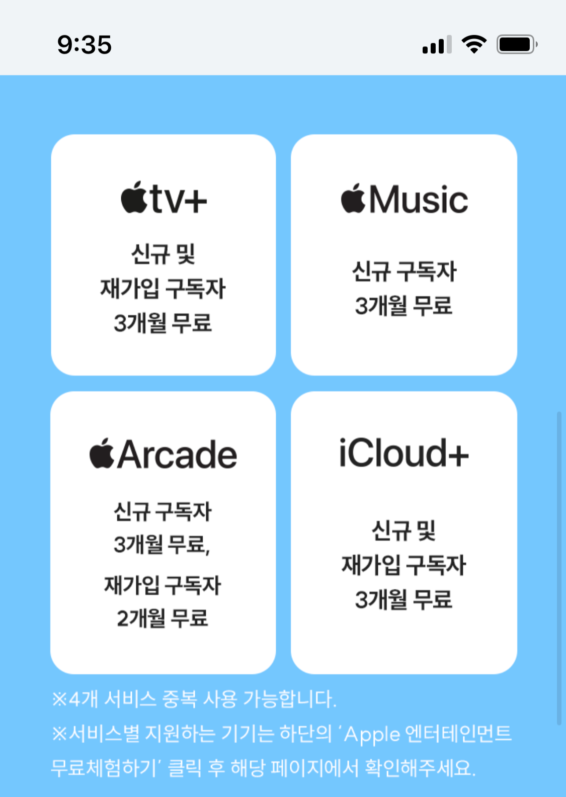 - iCloud+ 조건: 신규 및 재가입 구독자 3개월 무료