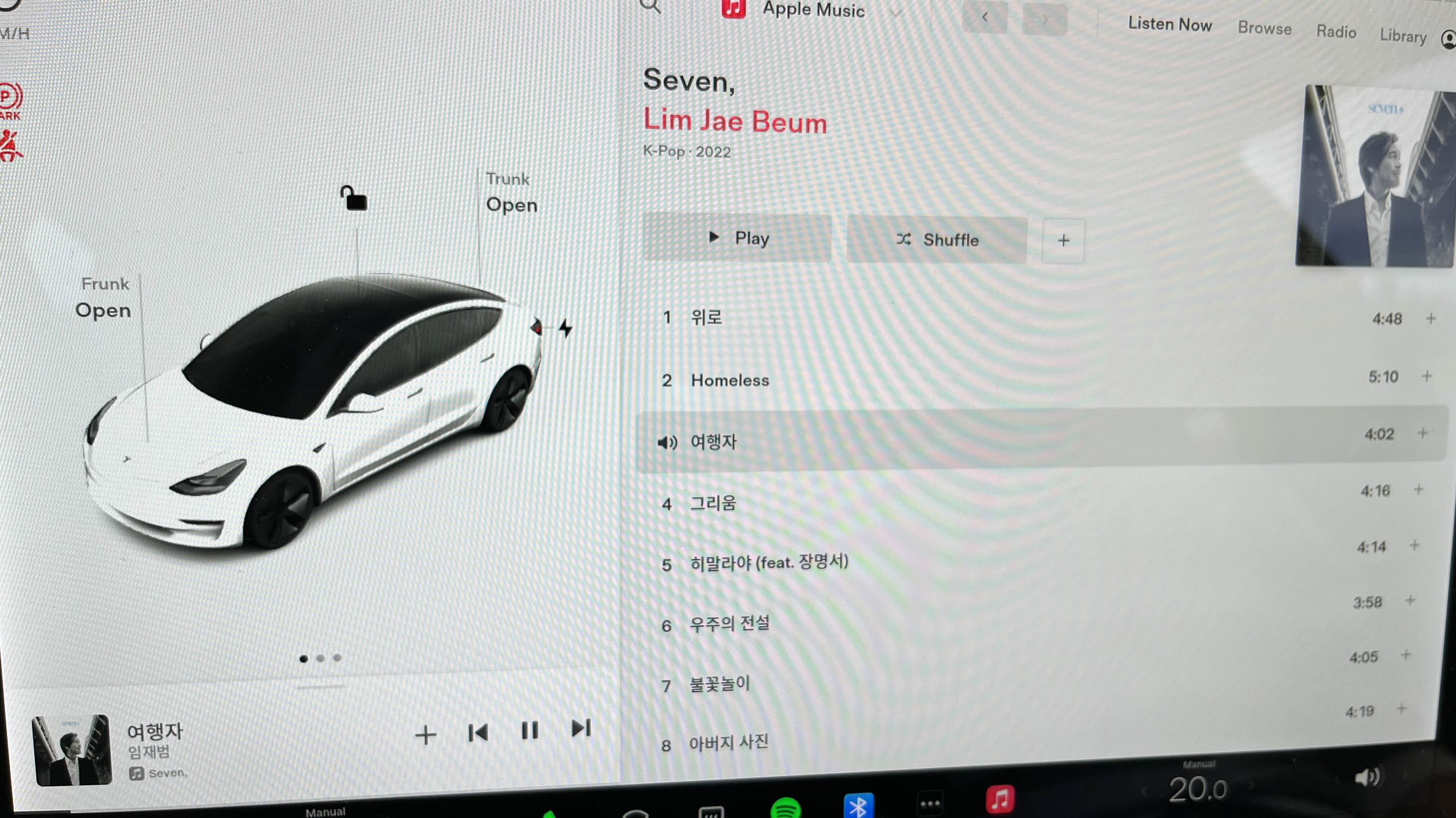 연결이 다 되고 나면 이렇게 테슬라에서도 애플뮤직을 이용할 수 있게 됩니다. 와우!