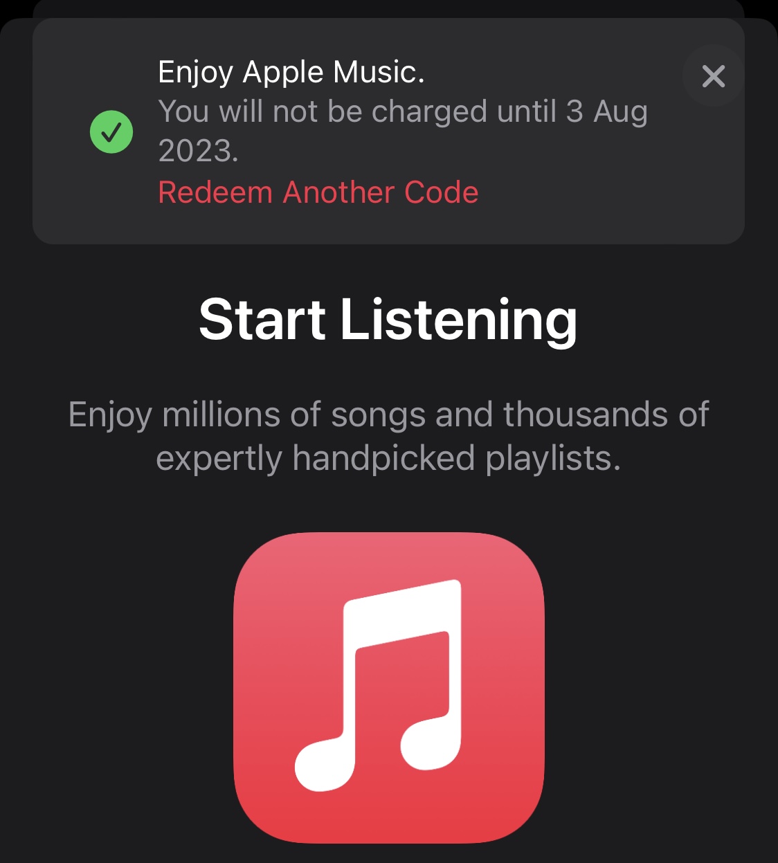 등록을 하면 23년 8월 3일까지 애플뮤직을 사용할 수 있습니다.