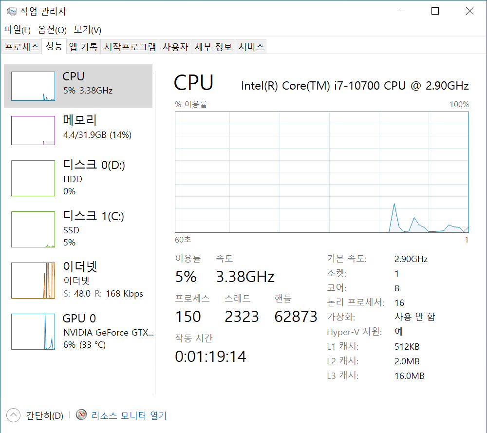 참고로 이 포스팅 맨 아래에 i7-10700 PC 구입 관련 포스팅 링크가 있습니다.