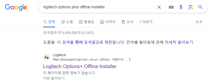 1. 구글에서 "logitech options plus offline installer" 라고 검색하기