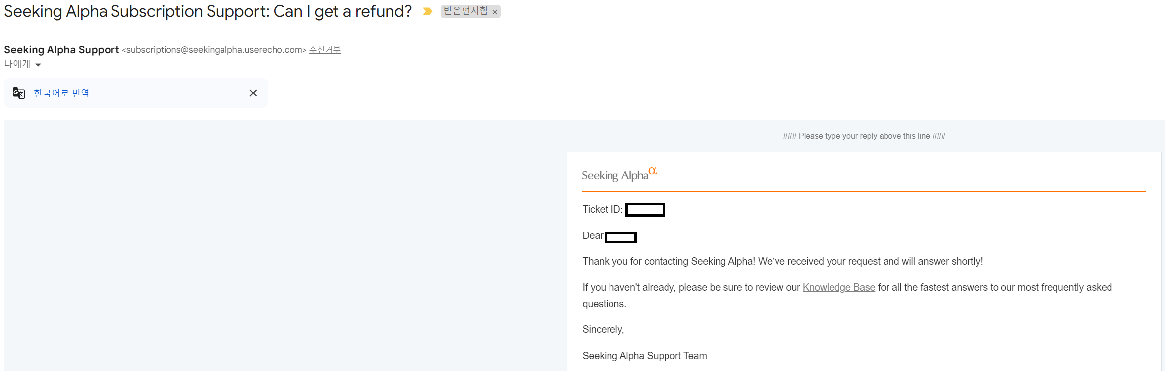 시킹알파 환불 과정