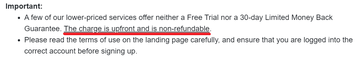 저렴한 가격의 서비스 중 일부는 무료 평가판이나 30일 제한 환불 보장을 제공하지 않습니다. 요금은 선불이며 환불되지 않습니다.
