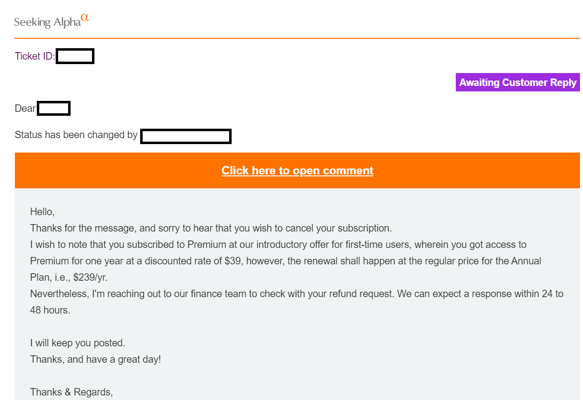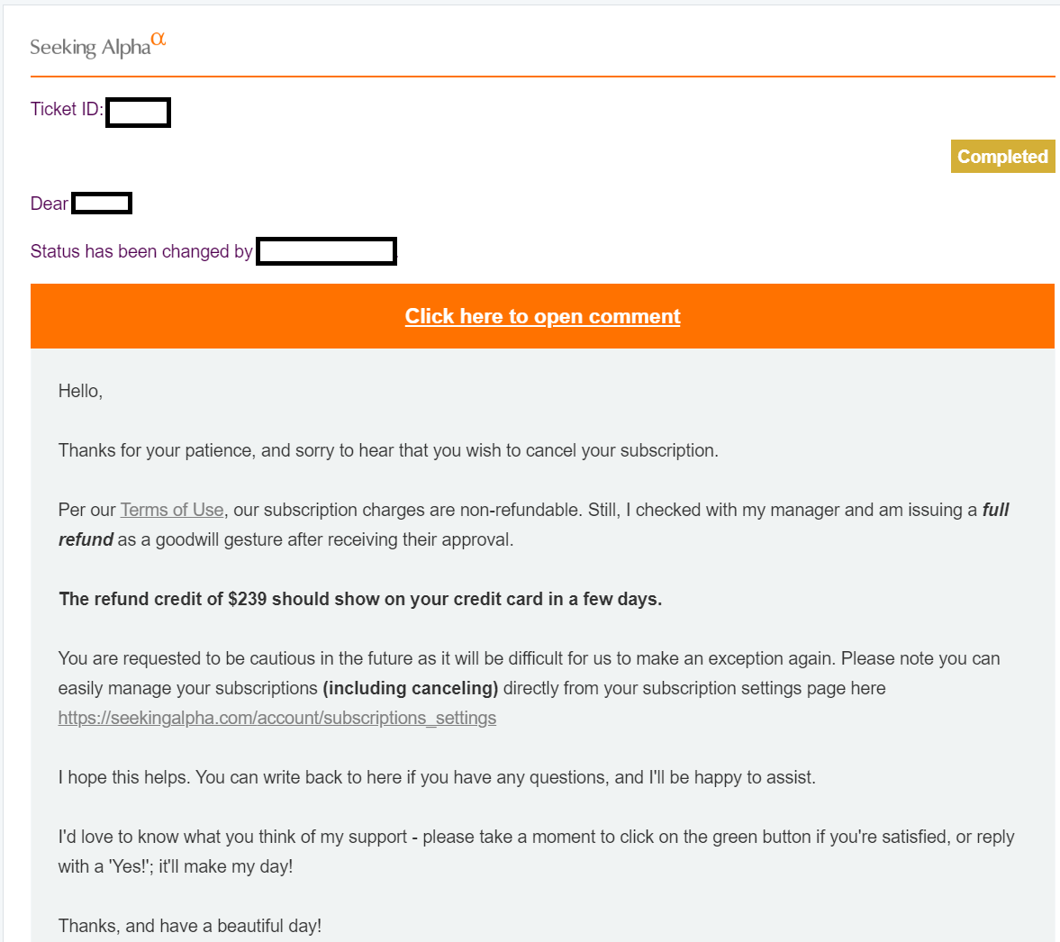 I subscribed seeking alpha premium last year and I felt seeking alpha premium is no longer useful for me. So I planned to cancel the premium but I forgot to disconnect my credit card.