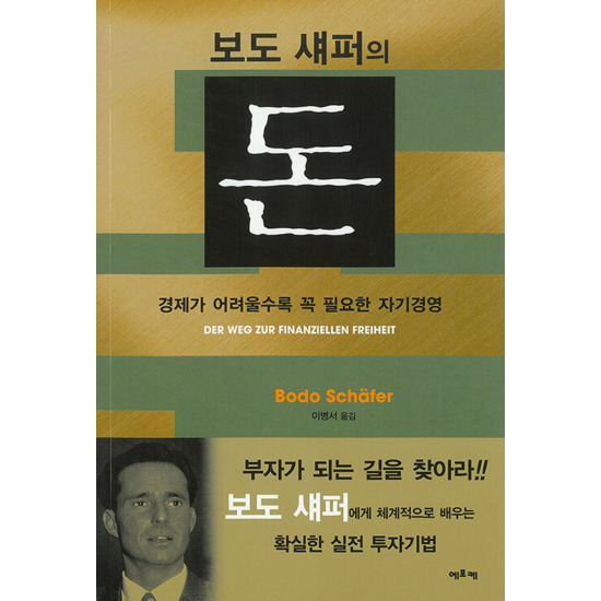 예전판 표지는 원래 이랬습니다. 보도 섀퍼의 젊을 적 사진이 있고 표지 디자인은 약간 칙칙한 느낌이 들기도 합니다. 저는 예전판을 구입하여 지금도 가지고 있습니다. 처음에는 도서관에서 빌려 읽었는데 책 내용이 너무 마음에 들어서 다시 구입을 했습니다.
