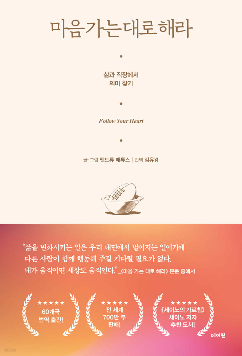 원래는 아래와 같은 표지의 책이었습니다. Follow your heart. 그런데 지금은 이 책이 유명해져서 그런지 표지를 바꿔서 판매하고 있네요.