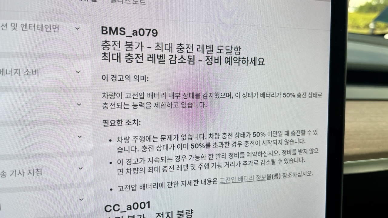 22년식 모델3에 뜬 BMS_a079 에러
