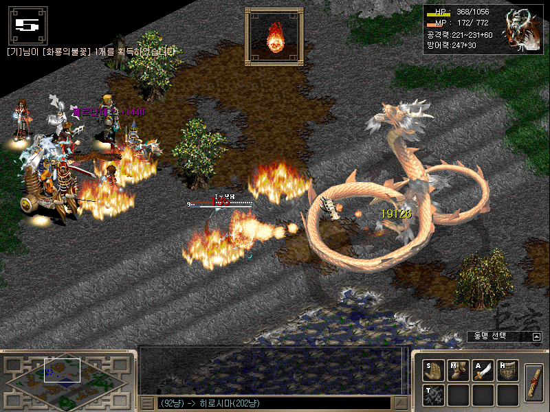 2008년에 찍은 아직 남아 있는 스샷 몇장을 남겨 본다. 주로 화룡의 불꽃을 얻는 장면이다. 화룡을 잡기 위해 신립, 페르난데스, 본케도 무기를 총 들고, 나중에는 '기'라는 환수를 이용했던 것 같다.
