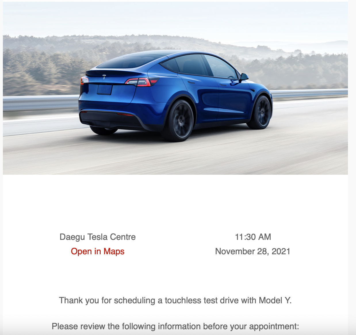 Confirmation—Your Model Y Test Drive