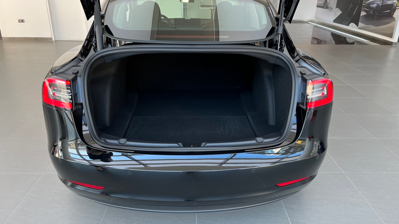 모델3의 뒷 트렁크입니다. 생각보다 적재 공간이 넓었습니다. 바닥에 물건을 더 싣을 수 있는 공간이 더 있더군요. 모델3 적재공간이 너무 작지 않을까 걱정했는데 생각보다 넓어서 안심했습니다. 내부의 좌석 공간도 생각보다 그리 좁지는 않더군요.